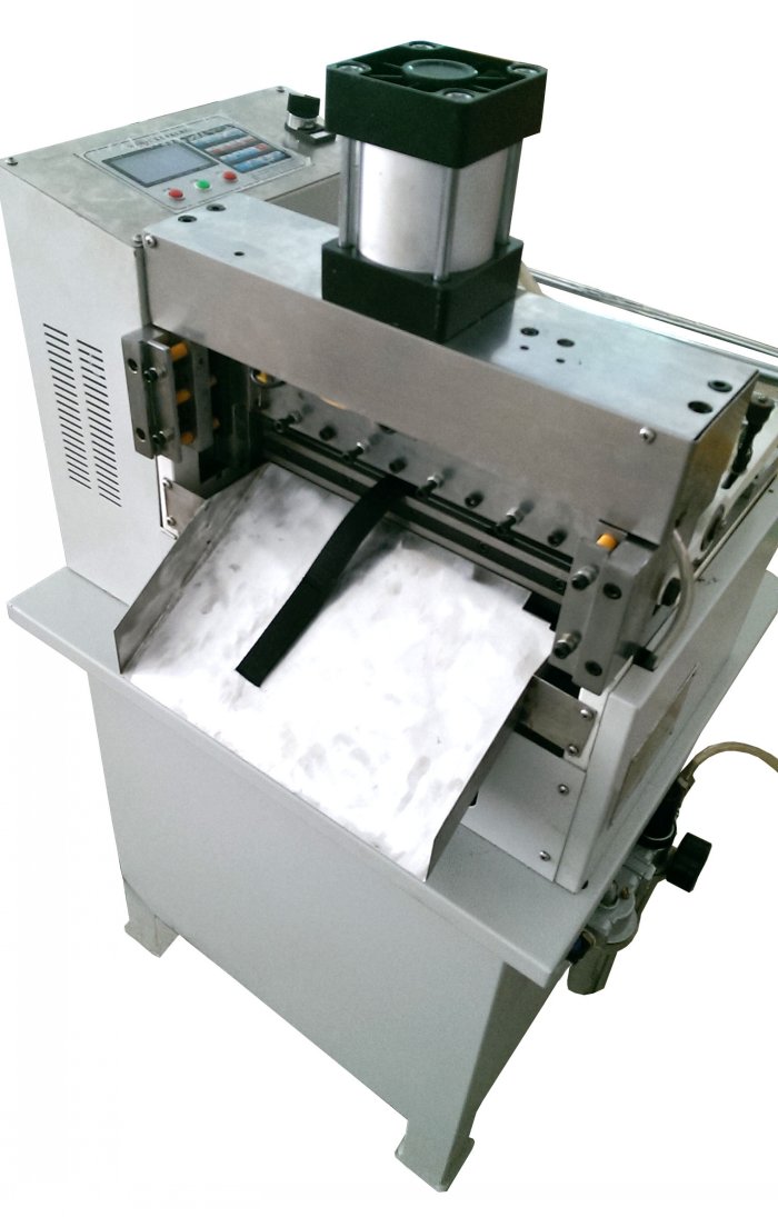 用途:本機適合于:箱包、皮具、鞋業、電子、繩帶、電子行業、汽摩配行業、電器、電機、燈具、玩具、變壓器、服裝、文具等行業。如:套管、排線、銅鋁線、彩色帶、魔術帶、織帶、安全帶、PP帶、尼龍帶、粘扣帶、棉紗帶、松緊帶、塑膠帶、拉鏈、套管、紙類、排線、小電線、金屬薄片等材料定長裁切 。